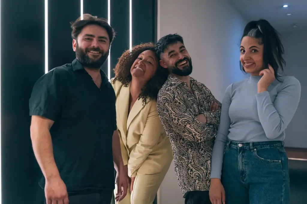 vlnr: Onur Kaletaş (muzikant), Nina-Elisa Euson (maker, regisseur) Ferhat Kaplan (maker acteur) Yeliz Dogan (maker acteur) foto: Tom Fennis