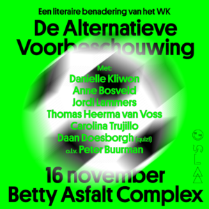 We gaan in gesprek met voetballiefhebbende schrijvers, afgewisseld met voordrachten. Dit doen we onder leiding van schrijver/gelegenheidsvoetbalpodcaster Peter Buurman en met de volgende rits sterspelers: Thomas Heerma van Voss, Danielle Kliwon, Jordi Lammers, Anne Bosveld, Carolina Trujillo en Daan Doesborgh, wiens quiz natuurlijk niet kan ontbreken.